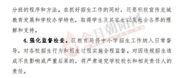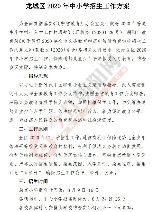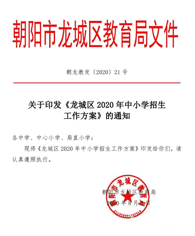 剛剛,本網(wǎng)編輯從朝陽市龍城區(qū)教育局獲悉,為做好全區(qū)2020年中小學(xué)招生工作,保障適齡兒童少年平等接受義務(wù)教育,結(jié)合龍城區(qū)實(shí)際,該局印發(fā)了《龍城區(qū)2020年中小學(xué)招生工作方案》,對(duì)指導(dǎo)思想、工作原則、招生時(shí)間、工作要求、保障措施等內(nèi)容進(jìn)行了詳細(xì)解讀?,F(xiàn)分享給大家,但愿能幫到每一位可敬的家長(zhǎng)和可愛的小朋友。