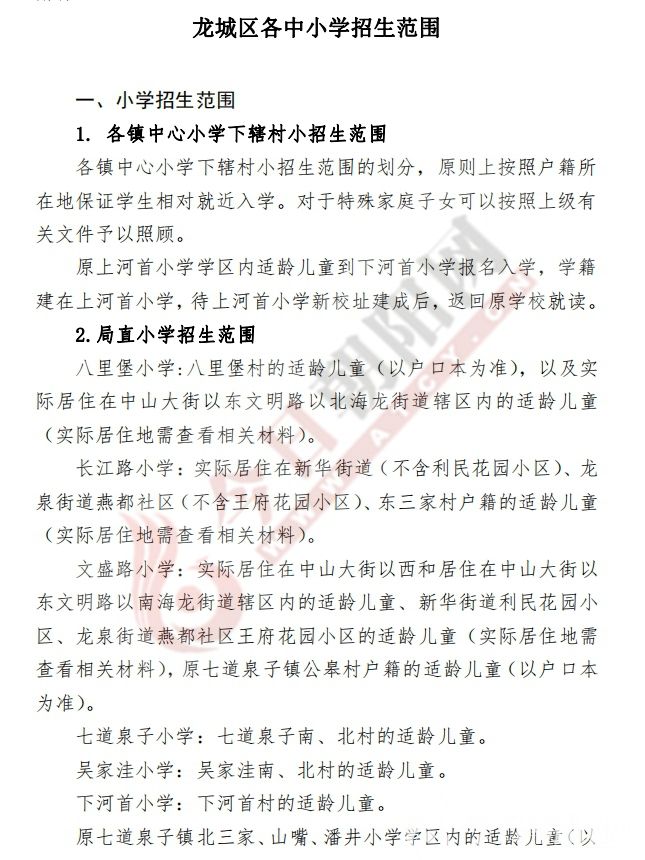 最新便民消息!龍城區(qū)各中小學招生范圍公布