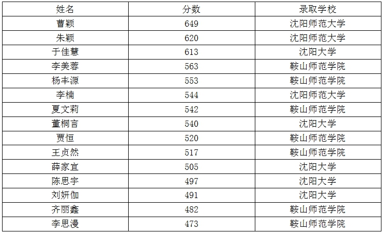 我看過這樣一句話:“一個人優(yōu)秀不算優(yōu)秀,身邊的人都優(yōu)秀,我才會更優(yōu)秀。”現(xiàn)在也印證了這句話,在今年中職升本考試中,和我同專業(yè)的同學(xué)中共有15人被沈陽師范大學(xué)、沈陽大學(xué)、鞍山師范學(xué)院三所本科大學(xué)錄取,其中600分以上3人,500分以上11人。