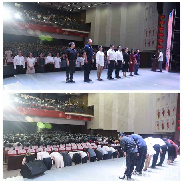 活動(dòng)伊始,全體人員齊誦《感恩詞》,整齊而洪亮的感恩誓言讓整個(gè)會(huì)場(chǎng)充滿了感動(dòng)與勵(lì)志的正能量。接著,學(xué)生恭恭敬敬地向老師們行敬師禮,感恩老師的辛勤培育和悉心教導(dǎo)。