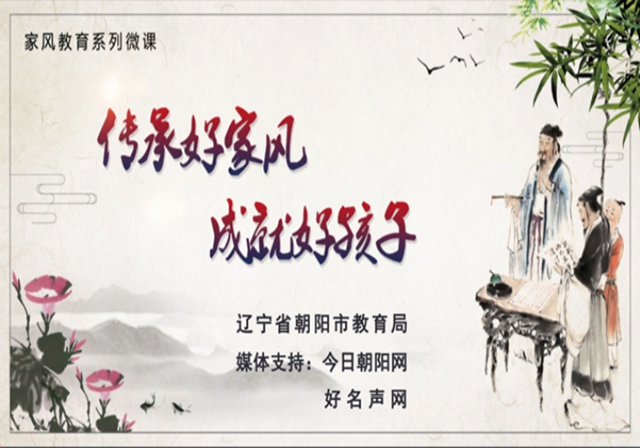 李淑惠,曾任朝陽市教育局副局長(zhǎng)、朝陽市人民政府教育督導(dǎo)室主任。她從事教育工作35年,于2019年7月退休, 2020年被聘為朝陽市家庭教育講師團(tuán)顧問。她勤勞不輟,退而不休,一直熱衷于家庭教育、關(guān)心青少年健康成長(zhǎng)和青年教師專業(yè)水平提升,多次為家長(zhǎng)朋友、廣大青年教師開展講座,傳經(jīng)送寶,滿腔熱情為教育傳播智慧和正能量。本節(jié)微課主要圍繞家風(fēng)建設(shè)從四個(gè)角度展開分析,在什么樣的家風(fēng)背景下家庭成員能夠更好地成長(zhǎng),尤其是青少年的成長(zhǎng)發(fā)展,立足我國(guó)優(yōu)秀的傳統(tǒng)文化精神,把“忠厚傳家久 詩書繼世長(zhǎng)”作為總括,從“格物致知,正心誠(chéng)意,修身齊家治國(guó)平天下;夫婦之道,參配陰陽,通達(dá)神明,信天地之弘義,人倫之大節(jié)也;立人立德立家風(fēng),天地萬物和至貴”三方面展開,力求廣大家長(zhǎng)了解傳統(tǒng)文化精髓,在家風(fēng)建設(shè)中取得共識(shí)。