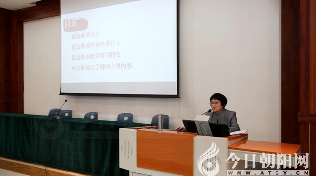 10月19日下午,遼寧省朝陽工程技術學校在10號樓階梯教室舉辦了《中華人民共和國民法典》專題講座。學校領導班子及全體教職工參加此次學習。講座由法律教研室主任李玉華主講,由黨辦主任李秀露主持。