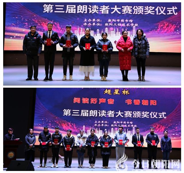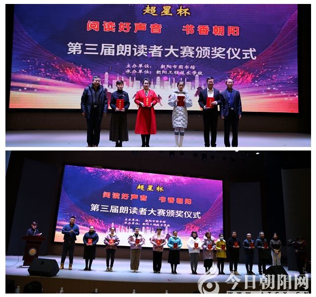 11月26日,由朝陽(yáng)市圖書館學(xué)會(huì)主辦、朝陽(yáng)工程技術(shù)學(xué)校圖書館承辦,以“書香助力戰(zhàn)‘疫’,閱讀通達(dá)未來(lái)”為主題的超星杯“悅讀好聲音·書香朝陽(yáng)”第三屆朗讀者大賽表獎(jiǎng)會(huì)在朝陽(yáng)工程技術(shù)學(xué)校報(bào)告廳舉行,標(biāo)志著歷時(shí)五個(gè)月的朗讀者大賽落下帷幕。朝陽(yáng)市文化旅游和廣播電視局副局長(zhǎng)包建余,朝陽(yáng)市社科聯(lián)秘書長(zhǎng)周寶印,朝陽(yáng)工程技術(shù)學(xué)校黨委書記、校長(zhǎng)武鐵兵,副校長(zhǎng)陳塞月,朝陽(yáng)市圖書館學(xué)會(huì)常務(wù)理事長(zhǎng)、朝陽(yáng)市圖書館副館長(zhǎng)王元等評(píng)審委員會(huì)成員參加了大會(huì)。大會(huì)由朝陽(yáng)工校圖書館副館長(zhǎng)唐麗君主持。