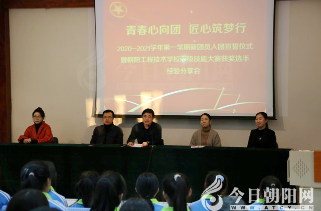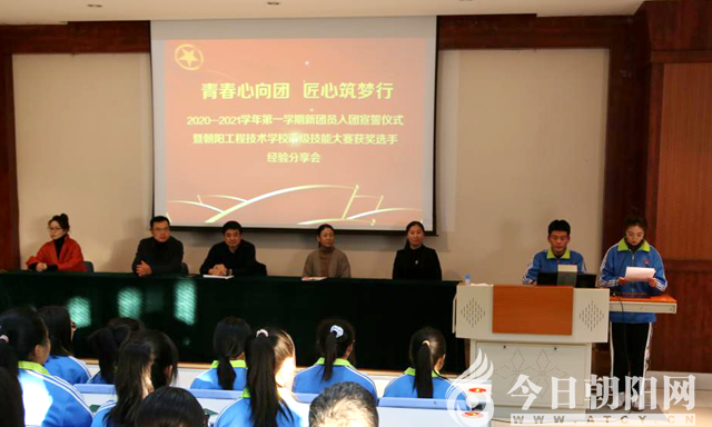 12月17日下午,共青團(tuán)朝陽工程技術(shù)學(xué)校委員會(huì)在十號(hào)樓階梯教室舉行了2020—2021學(xué)年第一學(xué)期新團(tuán)員入團(tuán)宣誓儀式暨朝陽工程技術(shù)學(xué)校市級(jí)技能大賽獲獎(jiǎng)選手經(jīng)驗(yàn)分享會(huì)。黨委書記、校長武鐵兵,副校長陳塞月、劉文光,團(tuán)委書記毛翠麗、團(tuán)委副書記武晶參加了會(huì)議。