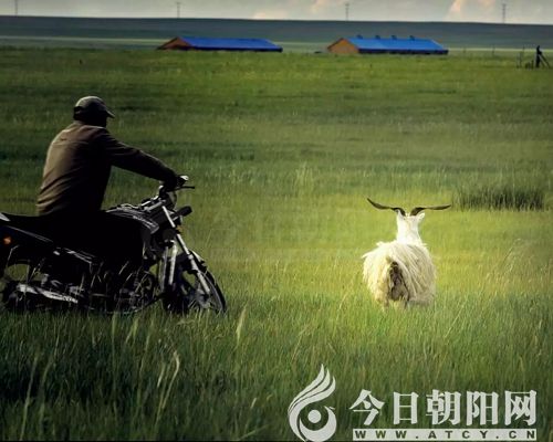 接著前行。一只帶角的羊,脫離了羊群。突然,騎摩托車的主人來找它,它撒腿就跑,欲與主人試比英雄。兩只牛似乎叫累了,母子漫步到群體遠(yuǎn)處,吃草中互相謙讓,互相體貼,互訴母子親情。