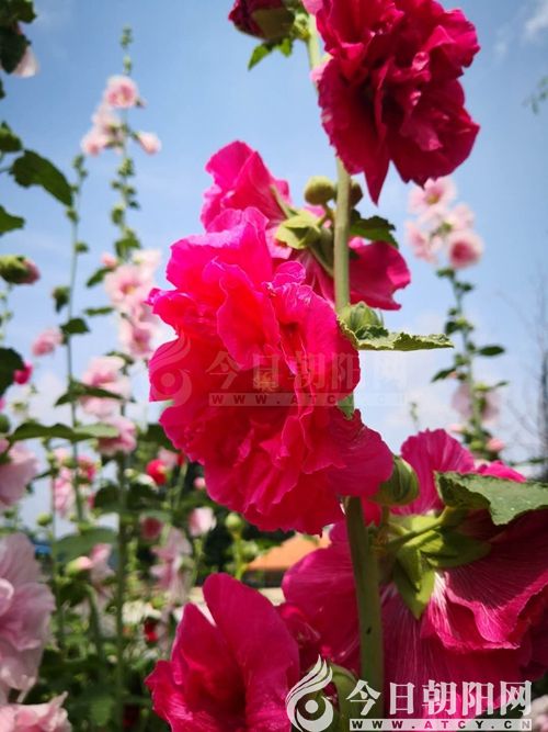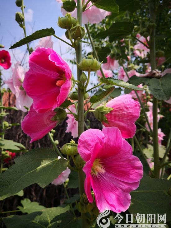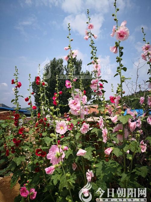 高梁桿花,學(xué)名蜀葵,還稱秫秸花、一丈紅等,我們家那里稱其為高粱桿子花,我也愿意這樣稱呼。記得小時(shí)候,每年六月份以后,我家大門外就會(huì)開(kāi)著鮮艷的高粱稈子花,行人路過(guò)都會(huì)夸贊幾句。