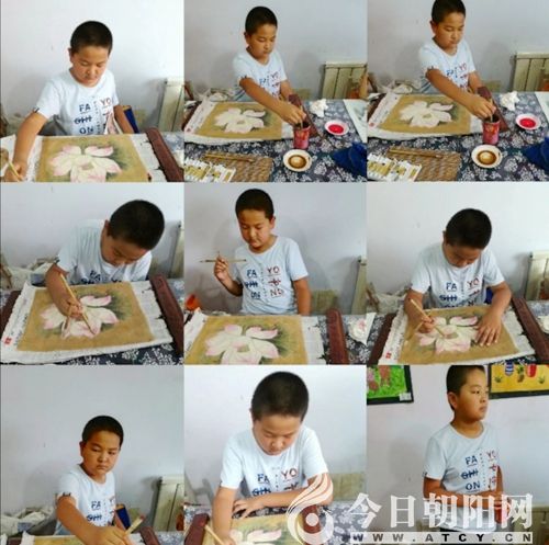 八年前,兒子樂樂五歲,我領(lǐng)著他出去和小朋友玩兒,他看到有的小朋友去畫室上課,也追了進去,這一進去怎么叫也不出來了。他看別的孩子拿畫筆畫畫,便搶過別人的畫筆亂畫起來。