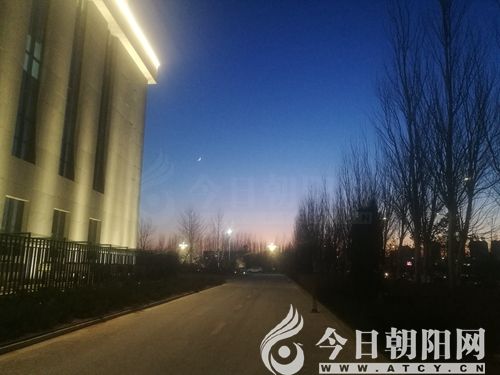 快至大門時,一鉤新月從樓后跳閃出來,在藍黑色蒼穹中遺世獨立,如剛剛與磨石切磋后的鐮刀刃,光亮潔凈,冷峻凄美。右上側(cè)一顆亮星與這上弦月牙綢繆纏綿,依偎相望,如兩個孤傲清高的靈魂相互照應(yīng)。