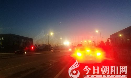 車行紅燈處,右側(cè)人行道開闊處,見一對情侶在與月合影。女孩身著白色長款羽絨服,紅帽子,雙手托月牙狀,回眸莞爾。男孩一襲黑色,坐于地上,身體后仰,用手機將這一美麗瞬間定格,再次溫暖了這徹骨的寒夜。