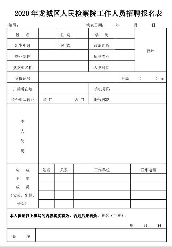 附件1:2020年龍城區(qū)人民檢察院工作人員招聘報(bào)名表