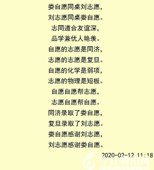 摘要:婁自愿同桌劉志愿,劉志愿同桌婁自愿。