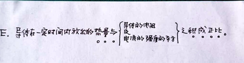 E.導體在一定時間內放出的熱量與導體的電阻及電流的強度的平方之積成正比。