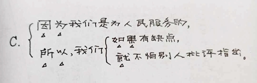 C.因為我們是為人民服務的,所以,我們如果有缺點,就不怕別人批評指出。