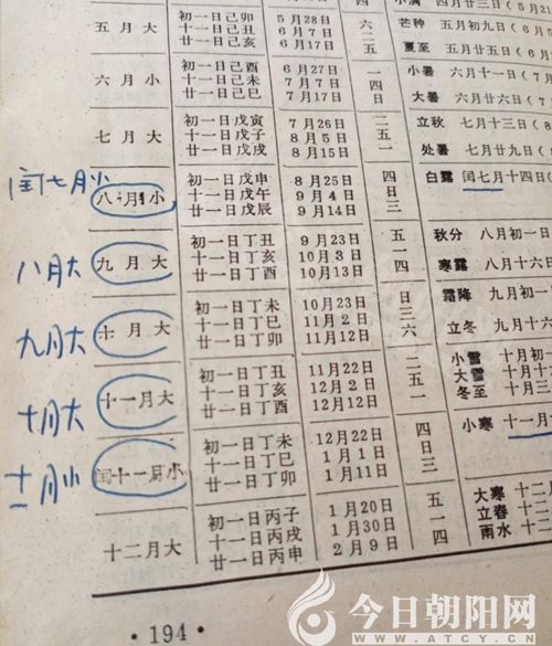 把“閏七月小、八月大、九月大、十月大、十一月小”,印成了“八月小、九月大、十月大、十一月大、閏十一月小”。