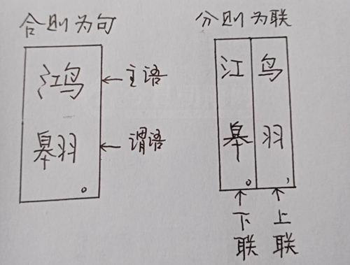 “鳥羽”仄仄,偏正結(jié)構(gòu),可視為上聯(lián);“江皋”平平,偏正結(jié)構(gòu),可視為下聯(lián)。