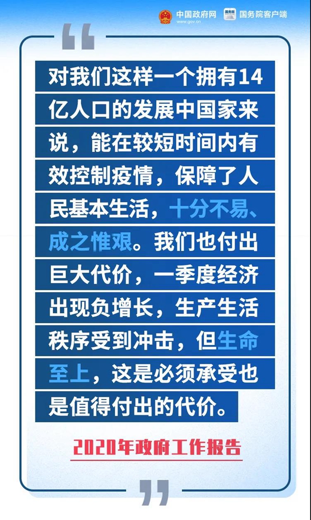 摘要:對我們這樣一個擁有14億人口的發(fā)展中國家來說,能在較短時間內(nèi)有效控制疫情,保障了人民基本生活,十分不易、成之惟艱。我們也付出巨大代價,一季度經(jīng)濟(jì)出現(xiàn)負(fù)增長,生產(chǎn)生活秩序受到?jīng)_擊,但生命至上,這是必須承受也是值得付出的代價。