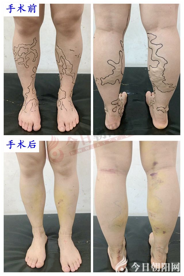 患者陳女士,10月26日因“雙側(cè)大隱靜脈曲張”住進(jìn)了市二院血管甲乳外科病房,這位年輕患者雙下肢大范圍靜脈曲張已經(jīng)有10年了,曾經(jīng)在外地做過(guò)“硬化劑注射”后很快復(fù)發(fā),由于顧慮傳統(tǒng)手術(shù)的刀口不美觀而遲遲沒(méi)有進(jìn)一步治療,近期曲張靜脈愈發(fā)增多、增粗不得不就醫(yī)。醫(yī)生考慮到患者對(duì)于手術(shù)有微創(chuàng)和美觀的要求,制定了“射頻消融+透光動(dòng)力旋切”的手術(shù)方案。10月28日手術(shù)順利實(shí)施,歷時(shí)1個(gè)半小時(shí),雙下肢共5處創(chuàng)口,最大約4mm、最小僅2mm。術(shù)后第一天,患者即離床自由活動(dòng)。術(shù)后第三天換藥,恢復(fù)良好滿意出院。