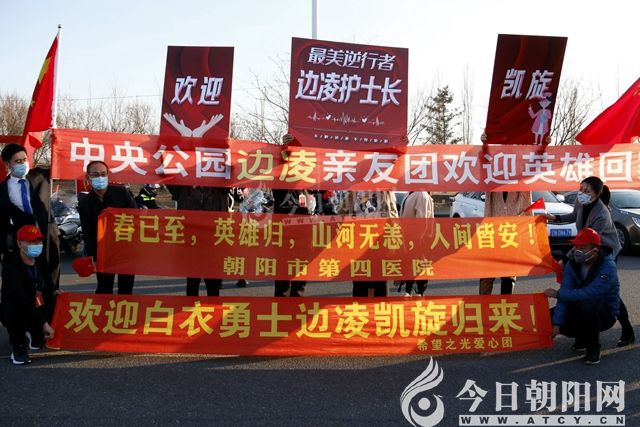 惠風(fēng)和暢,春意漸濃。4月1日下午6時30分,遼寧省朝陽市第四醫(yī)院結(jié)核五科護(hù)士長邊凌、結(jié)核四科護(hù)士劉宏梅、腫瘤科護(hù)士曹琳隨朝陽市第三批援鄂醫(yī)療隊平安返回朝陽。在朝陽北高速口,市委、市政府為醫(yī)療隊舉行了熱烈的歡迎儀式。市政協(xié)主席劉朝震講話,市委常委、市政府黨組副書記牛殿祥主持,副市長黃麗穎及市衛(wèi)健委、醫(yī)院有關(guān)領(lǐng)導(dǎo)參加。聞訊而來的家屬與熱心市民排出長隊迎接英雄們回家。