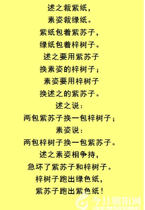 作者將紫蘇子和梓樹子擬人化,讓紫蘇子和梓樹子從紙包里自己跑出來,增加了繞口令的文學(xué)性、藝術(shù)性,使作品更加耐讀。