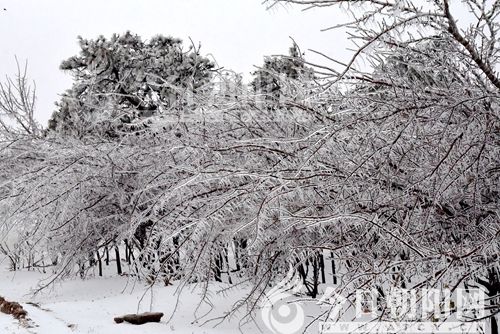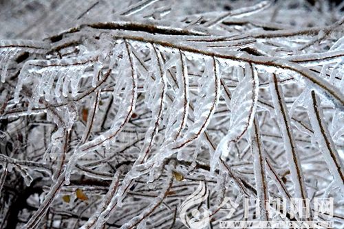 這樣的氣象現象太少見了,打開電腦一陣猛搜。雨后結冰,晶瑩剔透,壓彎或者壓折樹木是典型的冰雨。冰雨是怎么回事,繼續(xù)看下去:凍雨是初冬或冬末春初時節(jié)一種罕見的氣象現象。由于氣候的原因,地面溫度低,雨水下到地上成冰,構成凍雨。