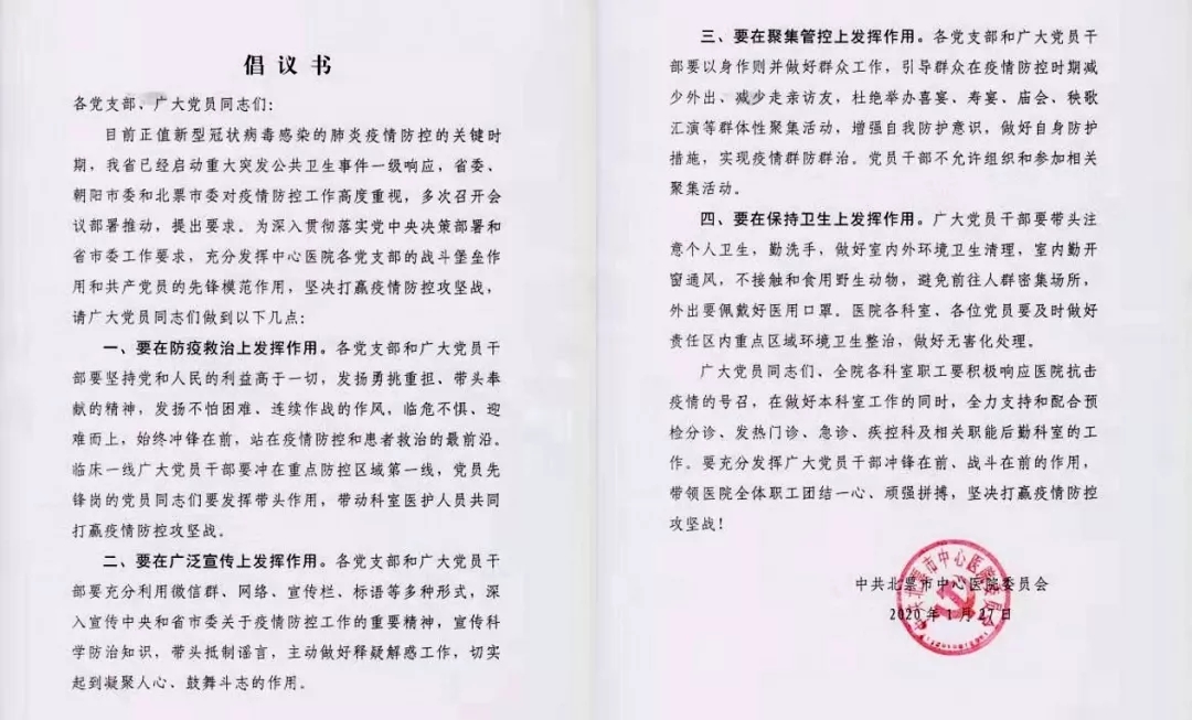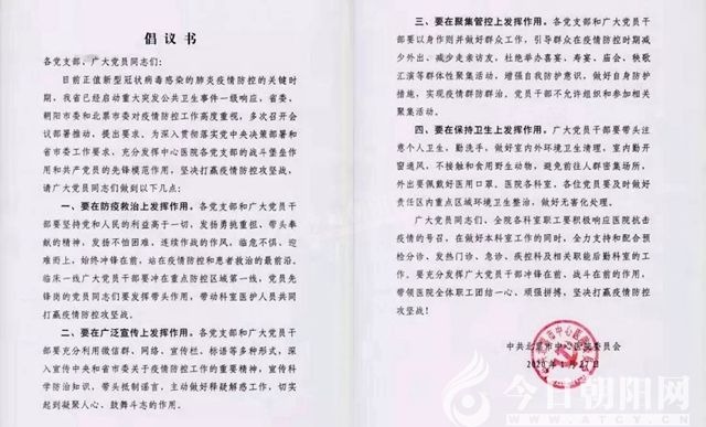 北票市中心醫(yī)院黨委向全院黨員發(fā)出倡議