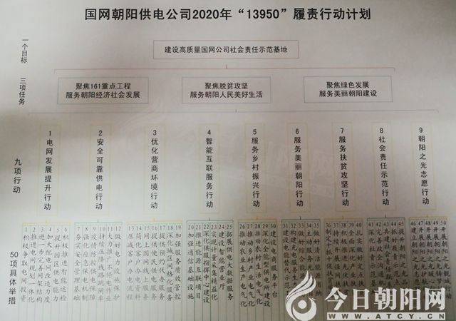 在2020年供電“13950”履責(zé)服務(wù)工作安排方面,該公司設(shè)立了一個(gè)目標(biāo)、三項(xiàng)任務(wù)、九項(xiàng)行動(dòng)、50項(xiàng)具體舉措暨“13950”履責(zé)行動(dòng)計(jì)劃。