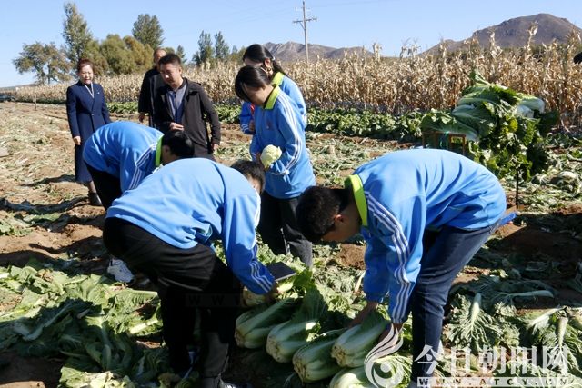 當我們來到下洼村小學時,孩子們早已佩戴好紅領(lǐng)巾,列隊完畢等待著客人們的到來。當孩子們接過一本本精美的圖書,看到他們臉上純真的笑容,我感到說不出來的喜悅。隨后我們跟著駐村第一書記梁振來到了村里的一片白菜地,幫助農(nóng)民伯伯裝了半車白菜。由于行程安排,我們勞動的時間并不長,但卻讓我們踏踏實實感受到了農(nóng)民的不容易。我們的團員代表采訪了梁書記,向梁書記了解了一些國家的扶貧政策和下洼村所發(fā)生的變化,梁書記非常認真細致地給我們講解,讓我們感受到國家的扶貧力度、溫度和扶貧干部的責任擔當。