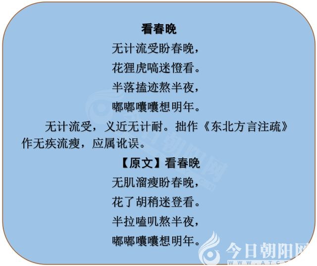 鼠年將至,微信圈里流傳一組東北“風(fēng)”,頗具東北味。然而,白字較多,不符合“說(shuō)方寫本”的基本原則,卻能反映方言語(yǔ)音的原貌。興之所至,不揣冒昧,謹(jǐn)據(jù)拙作《東北方言注疏》(白山出版社2016年)做些訂正,有不當(dāng)之處,恭候佚名作者和大方之家批評(píng)指正。祝愿看官諸君鼠年大吉!