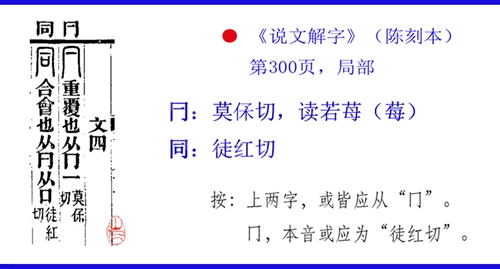 “從口,非是。”是否應(yīng)該從“一口”呢?若從“一口”,則可音“冂”。“同”之音義,皆有所據(jù)。