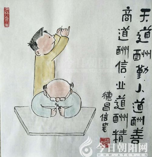 范德昌,今日朝陽(yáng)網(wǎng)文化信使,1955年生于山東濰坊,自幼酷愛書畫。現(xiàn)為山東省美術(shù)家協(xié)會(huì)會(huì)員,山東省漫畫協(xié)會(huì)理事兼副秘書長(zhǎng),漫畫人生指導(dǎo)老師,《婦女雜志》《女人觀天下》等報(bào)刊簽約畫家。30多年來(lái),在全國(guó)160余家報(bào)刊發(fā)表作品6000余件,260余次獲獎(jiǎng)。1994年至今,已岀版12本個(gè)人畫集。40多件作品被日本、韓國(guó)、新加坡和中國(guó)臺(tái)灣、香港的企業(yè)家及朋友收藏,被多家新聞媒體譽(yù)為扎根基層的民俗畫家,被評(píng)為“山東省百名讀書人物”和提名為“百名文化名人”。風(fēng)格獨(dú)特、個(gè)性鮮明的水墨小品,貼近生活,寓教于樂(lè),深受大眾喜愛。事跡和畫作被收編入《中國(guó)人才薈萃》、《二十一世紀(jì)人才庫(kù)》等8本辭書和傳記,18幅孝文化作品被收編于《銀齡書畫冊(cè)》。