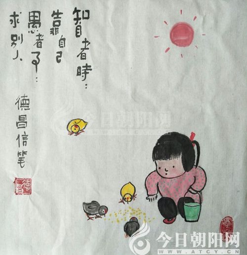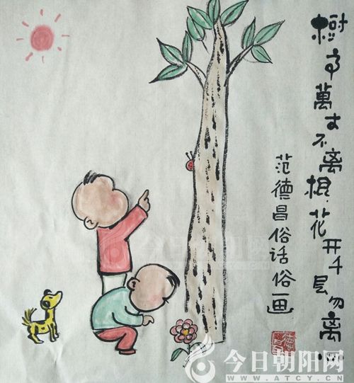 范德昌,今日朝陽網文化信使,1955年生于山東濰坊,自幼酷愛書畫?,F為山東省美術家協(xié)會會員,山東省漫畫協(xié)會理事兼副秘書長,漫畫人生指導老師,《婦女雜志》《女人觀天下》等報刊簽約畫家。30多年來,在全國160余家報刊發(fā)表作品6000余件,260余次獲獎。1994年至今,已岀版12本個人畫集。40多件作品被日本、韓國、新加坡和中國臺灣、香港的企業(yè)家及朋友收藏,被多家新聞媒體譽為扎根基層的民俗畫家,被評為“山東省百名讀書人物”和提名為“百名文化名人”。風格獨特、個性鮮明的水墨小品,貼近生活,寓教于樂,深受大眾喜愛。事跡和畫作被收編入《中國人才薈萃》、《二十一世紀人才庫》等8本辭書和傳記,18幅孝文化作品被收編于《銀齡書畫冊》。