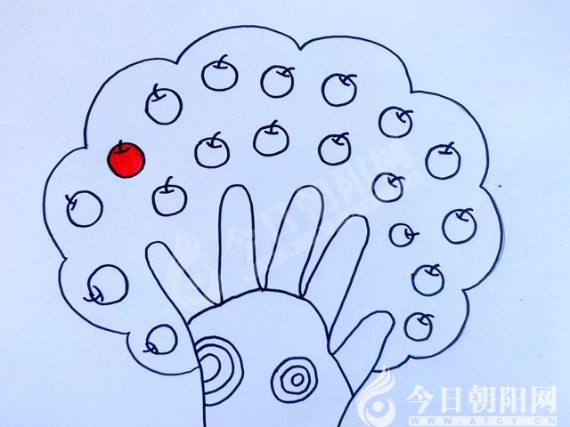 在小樹上畫出美味的小蘋果。