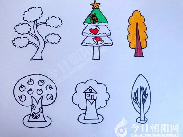 試著參考它們的形狀,發(fā)揮你們的想象力,畫出你喜歡的小樹吧。