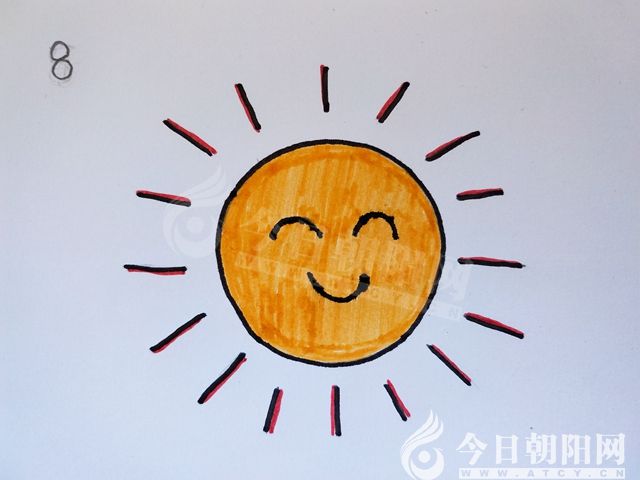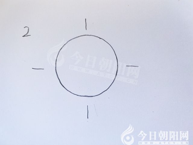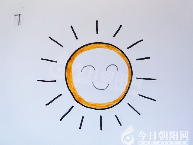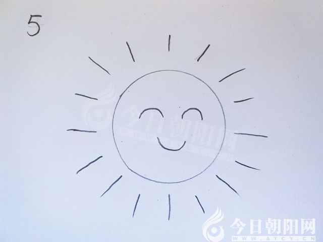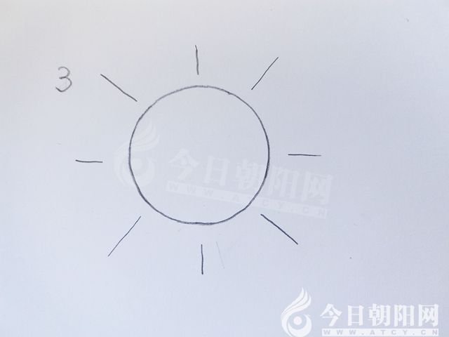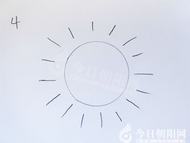 在圓形的上下左右,各畫上一條短線,這是太陽的光芒。