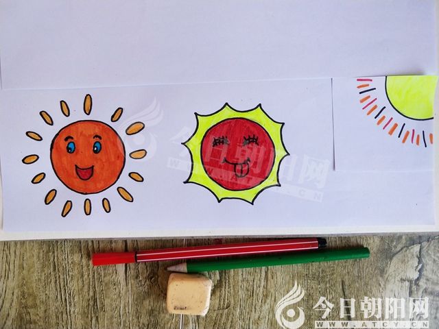 太陽的涂色,主要用大紅色、橙色和黃色。