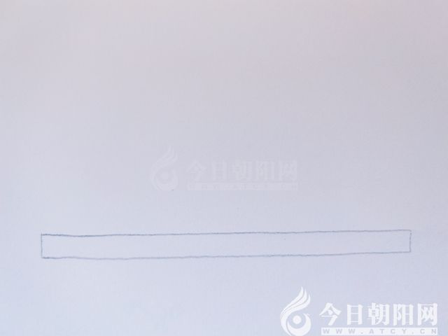 在畫紙的下方,畫一個(gè)窄窄的長(zhǎng)方形,作為生日蛋糕的底座。