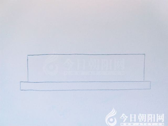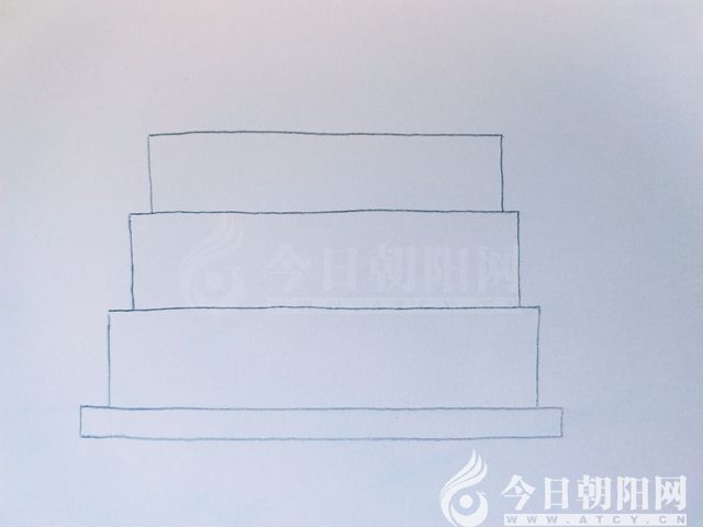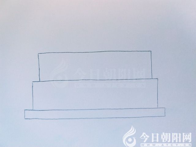 畫兩條豎線,一條橫線,與底座連接,形成一個(gè)長(zhǎng)方形。作為蛋糕的第一層。