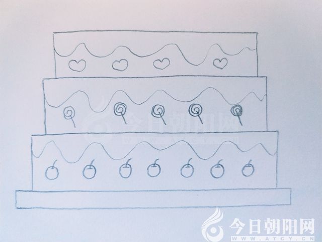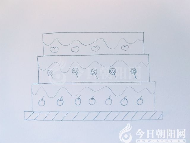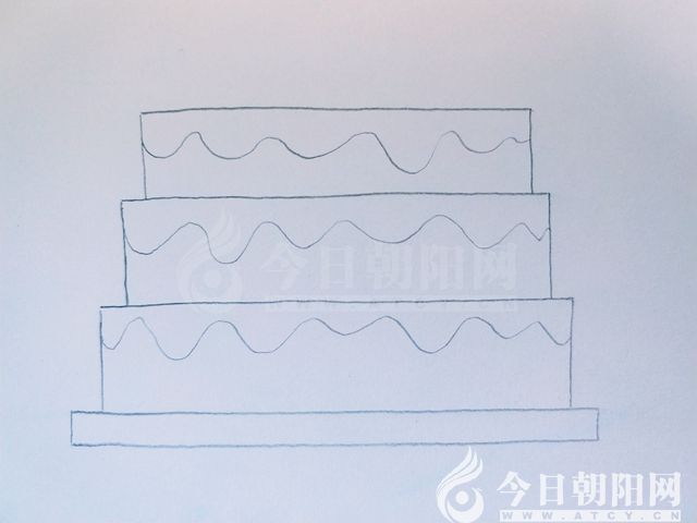 用波浪線,給每層蛋糕畫上奶油層。