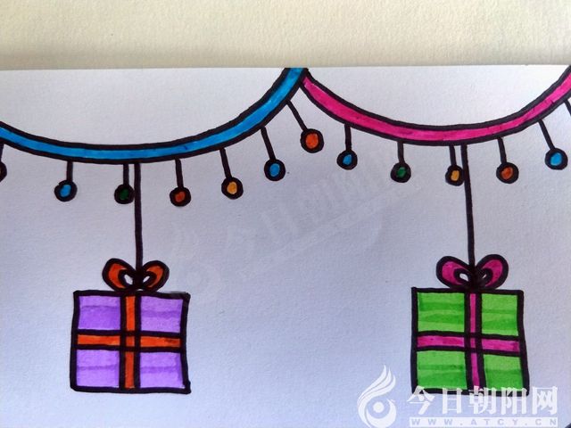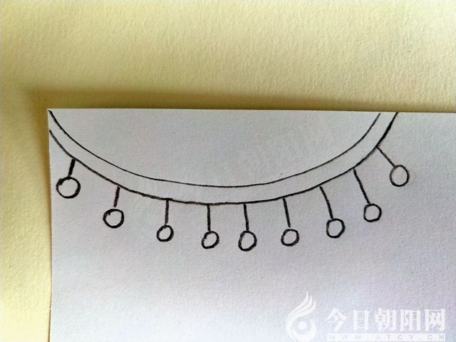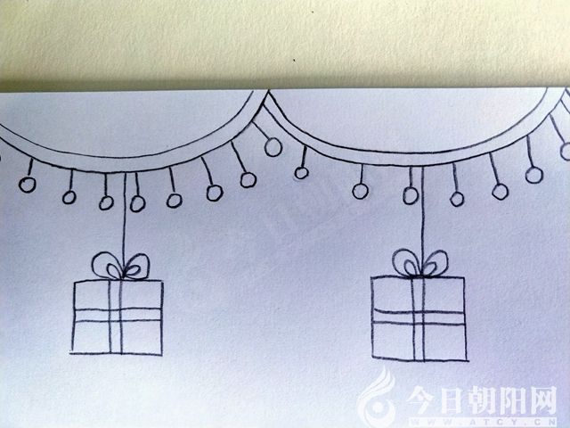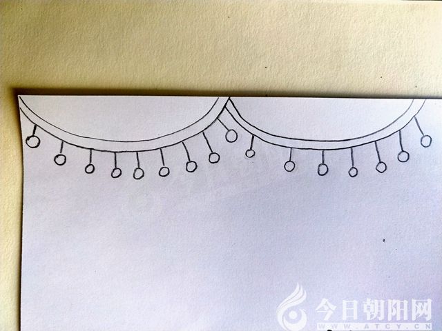 用豎線和圓形,均勻地畫(huà)上彩燈。