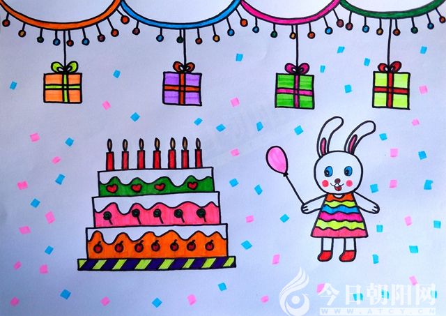 簡(jiǎn)筆畫(huà)的背景有很多種處理方法,可以均勻涂色,也可以畫(huà)各種與主題相符合的裝飾圖案。今天老師運(yùn)用的是相對(duì)比較簡(jiǎn)單的彩色方塊來(lái)作為背景裝飾。