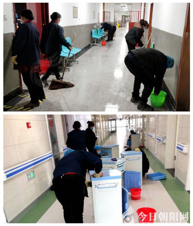 1月24日,天還沒亮,康旭蘭就急匆匆趕到醫(yī)院。過年了,她給家遠的姐妹放了假。但為了保質保量地完成每天固定的任務,她不得不提前到崗。經(jīng)過一上午的奮戰(zhàn),總算忙出點頭緒。中午,她還要掐著點兒趕到婆婆家做飯??墒秋埐诉€沒做好,便接到醫(yī)院布置的緊急任務:要求立刻打掃新建大樓五樓的樓層衛(wèi)生。新樓建成并裝修后,一直也沒徹底打掃過,這次工作用行話說叫做“開荒保潔”,其難度可想而知。放下電話,康旭蘭來不及吃飯便返回崗位。她心里十分清楚,這個節(jié)骨眼上想請外援簡直就是異想天開,一切只能靠自己帶著在崗值班的幾個姐妹玩兒命干了。