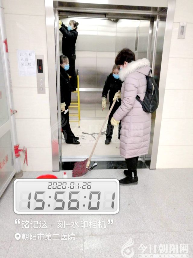為了打消員工的恐懼心理,給員工做好表率,她毫不猶豫地來到工作現場,給員工詳細做示范和講解工作。例如電梯消毒,按照醫(yī)院院感科提出的感染管理控制要求,電梯按鍵要用酒精消毒,首先鋪上保鮮膜,放上紙抽,有乘客乘坐電梯時,要讓乘客拿起紙巾去按鍵盤。如果發(fā)現有發(fā)熱或感染患者乘坐了電梯,要立刻跟進消毒,用1:200的84消毒液噴灑轎廂,用“毛巾物表擦拭法”擦拭轎廂,再用紫外線消毒燈照射,做到防控不留死角。