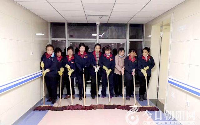 2月8日晚11點30分,任廣華經理接到院方緊急來電,說次日凌晨3點,朝陽市第三批援鄂醫(yī)護人員將在二院綜合病房樓大廳舉行出征儀式,屆時市長等領導會到場為出征戰(zhàn)士壯行,要求對周圍環(huán)境再做細致的清理。此時已是子夜,根據工作需要,所要找的保潔員,既要離家近且交通便利,還要責任心夠強才能完成任務。幾經思量,任廣華將電話打給了家住盤龍三期的兒科一病房保潔員孔慶華。