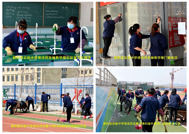 這次開學前的準備,受新冠肺炎疫情的影響,比往年增加了難度。因為小學和幼兒園還沒有開學,孩子在家需要有人照顧,有個別保潔員因此不能正常到崗,這些人的工作就需要大家來分擔。距離開學還有幾天的時間,市、縣組織的檢查已經(jīng)開始,時間緊、任務(wù)重,大家只能在有限的時間內(nèi)超負荷地工作,好多時候,中午都顧不得吃飯,直到把所有的活都干完。4月11日,大家在朝陽縣第一初級中學,從早上七點一直忙到晚上五點半。由于學校剛建成不久,樓內(nèi)樓外有些地方還在施工中,給保潔工作帶來了一定難度,需要不斷地清理周圍的場地。經(jīng)過一整天的奮戰(zhàn),終于圓滿完成了校方預(yù)定的各項保潔工作。當校領(lǐng)導(dǎo)看到樓宇窗明幾凈,操場靚麗如初,公廁一塵不染,情不自禁地對我們的保潔員豎起了大拇指。