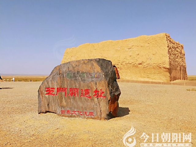 踏上散落在荒漠中的玉門遺址,熏風(fēng)拂面,熱浪滾滾,驟然覺(jué)得鼻腔干燥,口舌生煙,只有在售票區(qū)的大廳里才能找到清涼和舒適。夏季敦煌雖是旅游旺季,但與江南的名勝景區(qū)相比較,游人并不擁擠。沒(méi)有等候多久,我們就乘景區(qū)的擺渡車前往漢長(zhǎng)城遺址,河倉(cāng)城和玉門關(guān)。
