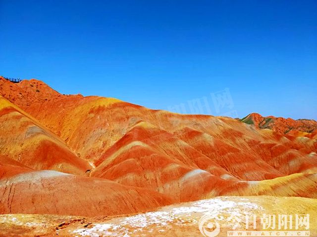 這里,每個(gè)景點(diǎn)都設(shè)置了最佳觀景平臺(tái)。沿著古樸的木棧道登上觀景平臺(tái),便可鳥(niǎo)瞰最美的丹霞畫(huà)卷。若是雨后初晴或是日落黃昏,丹霞的色彩會(huì)更加?jì)善G絢爛。