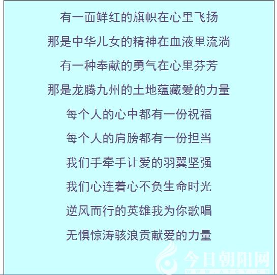 2020年的春節(jié)注定是不平凡的,湖北武漢的新冠肺炎疫情,牽動(dòng)著億萬(wàn)國(guó)人的心弦。寂靜的日月,仍有音樂在奔流,為那些逆行而上的英雄禮贊,為偉大堅(jiān)強(qiáng)的祖國(guó)祝福。遼寧朝陽(yáng)的音樂人歷時(shí)十余天,共同打造了一首充滿摯愛與溫暖的抗疫公益歌曲《共獻(xiàn)》。該曲由朝陽(yáng)市吉他學(xué)會(huì)副會(huì)長(zhǎng)楊童伊作詞作曲,朝陽(yáng)市眾多知名流行歌手傾情演繹,充分展現(xiàn)了奮戰(zhàn)在疫情一線的醫(yī)務(wù)工作者們無懼艱險(xiǎn)、激流勇進(jìn)的英雄氣概,以及中國(guó)人眾志成城、共克時(shí)艱的強(qiáng)大正能量。