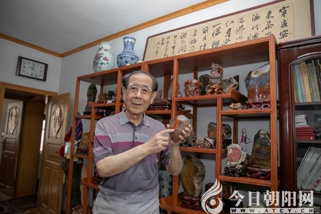 笑拈紅縞,見(jiàn)其大雅懷。紅縞不是平凡物,笑拈當(dāng)為韻雅人。君不見(jiàn)紅縞千年在,試問(wèn)春秋知音有幾。我在想,笑拈紅縞是一種什么樣的神態(tài)?是一種至情至酣地把玩,是一種如醉如癡地凝視,還是一種情不自禁地揣摩。誰(shuí)能進(jìn)入這種境界,沒(méi)有撥云見(jiàn)霧的氣量,沒(méi)有賞外識(shí)中的眼光,敢對(duì)紅縞弄華絢彩?細(xì)讀其稿,幾經(jīng)琢磨,一個(gè)長(zhǎng)眉善目、笑眼瞇瞇的智者,一個(gè)飽覽石色、看盡滄桑的老人,呈現(xiàn)在眼前,他就是人們敬佩的趙瑞老先生。笑拈紅縞,是他每日面對(duì)戰(zhàn)國(guó)紅沉思時(shí)的一種狀態(tài)。他自己或許都不知道,這樣的狀態(tài)每天會(huì)持續(xù)多長(zhǎng)時(shí)間,每次會(huì)是怎樣的一種享受。伴著窗前的光亮,在一杯禪茶的陪伴下,不時(shí)地用手中的絲絹,擦拭那方題名為《昭王讀史》的戰(zhàn)國(guó)紅。這方戰(zhàn)國(guó)紅紋縞奇美,色彩斑斕,其中圖案天成,有如書(shū)架藏于石中。趙老看著它,不禁發(fā)思古之情,聯(lián)想到戰(zhàn)國(guó)時(shí)的燕昭王,想到他熟讀史書(shū),坐擁書(shū)城的情境。于是,這方奇石得名《昭王讀史》,成為趙老的最愛(ài)。把一塊石頭的圖案與歷史人物聯(lián)系在一起,這樣的聯(lián)想與命名,既有韻味,又寓意深遠(yuǎn)。這塊戰(zhàn)國(guó)紅給了他許多夢(mèng)想和期盼。那些精彩奪目的瑪瑙紅縞一經(jīng)趙老笑拈,便見(jiàn)情見(jiàn)雅,風(fēng)騷盡顯。他笑拈中有一份鑒賞,有一份點(diǎn)評(píng)。有如大師開(kāi)光,一經(jīng)笑拈,神采畢現(xiàn)。經(jīng)他笑拈過(guò)后推薦的石頭,有的成為中華傳世名石,這方《昭王讀史》便被收入《中國(guó)石譜——中國(guó)觀賞石圖典》卷。