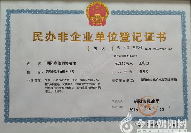 圖2德輔博物館登記證書(德輔博物館拍攝)