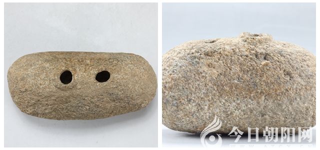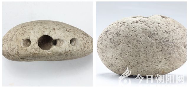 時間回到五年前春季的一天,筆者帶領(lǐng)館內(nèi)工作人員考察內(nèi)蒙古赤峰地區(qū)新石器時期的文化遺址期間,來到赤峰市古玩城走訪。一個店門口,一個農(nóng)民,一袋袋背著石器卸下,足足有十多袋,幾百件之多,傾倒地面后,都是沾滿塵土的普通殘損史前石器,憑經(jīng)驗(yàn)看器型,都是粗糙打制石器,初步認(rèn)定大多數(shù)為早于紅山文化的興隆洼文化石器,有鋤形、餅形、砍砸器、石球形、石斧形、石板等。問詢后才知,是一個農(nóng)民多年耕地或雨后、風(fēng)沙后在山上撿拾,堆積家中多年,孩子大學(xué)讀書之際,運(yùn)到了赤峰古玩城,正趕上南方某市新成立的博物館工作人員在當(dāng)?shù)厥烊说呐惆橄碌焦磐娉钦骷仄?,已?jīng)進(jìn)行了幾天,差不多將各店的史前石器征集一空了,正欲返程之際,也遇到這一幕,對此批石器也產(chǎn)生了興趣,只是店主已經(jīng)與農(nóng)民談妥全部收下,而且不讓挑選,整體轉(zhuǎn)讓,價不低。筆者在翻看時偶然發(fā)現(xiàn)了摻雜在石頭堆里的一塊橢圓形有孔石器,不知何用,因以往不曾見過,幾經(jīng)研究,初步判斷是一件可以吹響之物,基本具備了塤的適合拿握、有內(nèi)膛、吹奏孔和按音孔的特征,形制類似陶塤,但石質(zhì)的還是首次發(fā)現(xiàn)。經(jīng)詢問得知,該農(nóng)民為敖漢旗興隆溝人,此地距興隆洼遺址不遠(yuǎn)。因德輔博物館有文物保護(hù)、修復(fù)、展覽的業(yè)務(wù)(圖2),實(shí)在不愿看到特殊器型的文物繼續(xù)流失,再加上筆者對此件特殊石器不愿放棄,遂與南方人幾次價格競爭后,終于成功收獲了這批石器?;氐讲┪镳^,經(jīng)小心仔細(xì)清洗后發(fā)現(xiàn),兩孔塤形器為淺黃色砂巖磨雕而成,長10.1厘米、寬5.5厘米、厚4.6厘米、重332.2克。整體呈橢圓形扁體,一側(cè)平齊,一側(cè)橢圓鼓腹,橢圓鼓腹一側(cè)隱約可見雕有紋飾圖案,已侵蝕風(fēng)化,辨認(rèn)不清。頂部鉆有兩孔,其中一孔邊緣凸起,圓唇,為吹奏孔,另一孔平齊,為按音孔,兩孔在塤內(nèi)膛相通。幸運(yùn)的是,在整理期間,又在石器中發(fā)現(xiàn)了一件三孔橢圓形石器,三孔塤形器為白色石英巖磨雕而成,長7.4厘米、寬4.7厘米、厚3.2厘米、重150.2克。整體呈橢圓形扁體,外形與兩孔塤形器相似,只是尺寸略小一些。一側(cè)平齊,一側(cè)橢圓鼓腹,素面。頂部鉆有三孔,中間為大孔,大孔一側(cè)有一鉆豁的小孔,與大孔相連。內(nèi)膛不如兩孔石塤容積大。(圖3、圖4)
